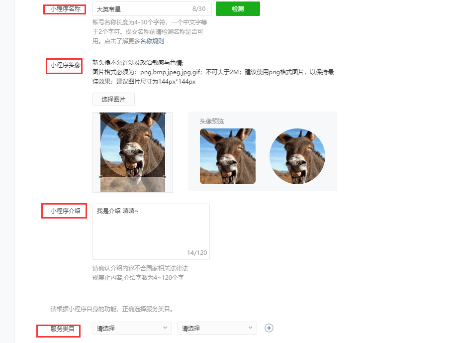 认证成功后,您可以前往微信公众平台填写小程序相关信息。点击小程序信息右侧的填写按钮。