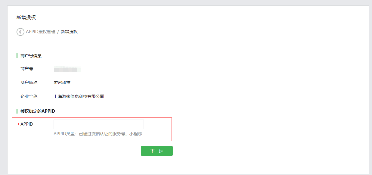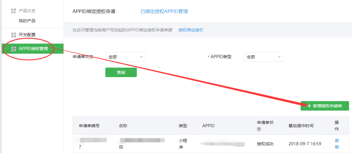 在公众号支付页面中,进入APPID授权管理,点击新增授权申请单。